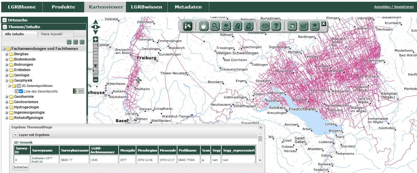 Anzeige und Übermittlung von Seismikdaten und anderen geologischen Untersuchungen im LGRBanzeigeportal